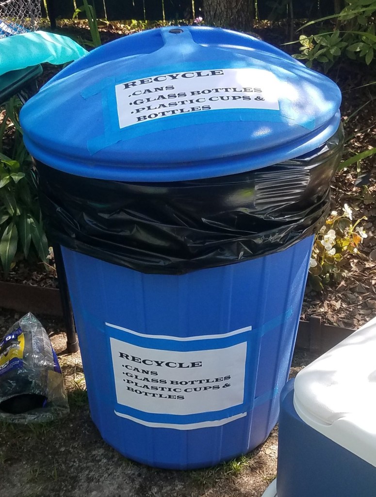 In the course of an afternoon, we generated a lot of soda cans, water bottles, and a few glass beer bottles. Like in many small cities, recycling is not yet the norm; bottles and cans are typically added to the other trash and hauled away to land fills. For this year’s crawfish boil, we decided to collect the bottles, cans, and plastic cups in a “custom labeled” garbage bin, and deliver it to a recycling location.